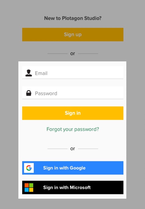 Create an account using your Google account information. You then can sign into Plotagon Studio using your Google or Gmail password.