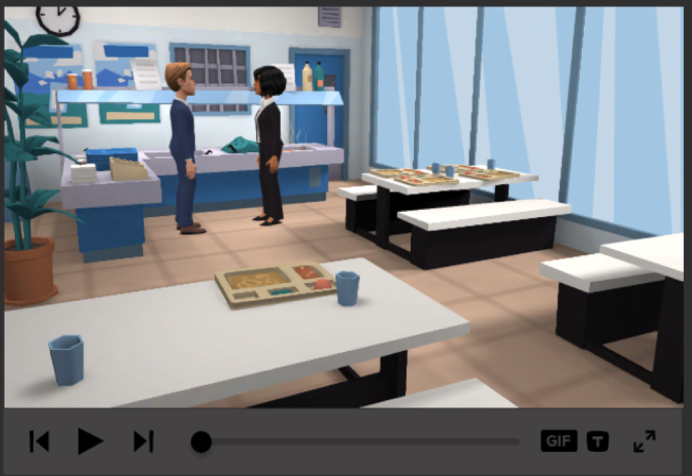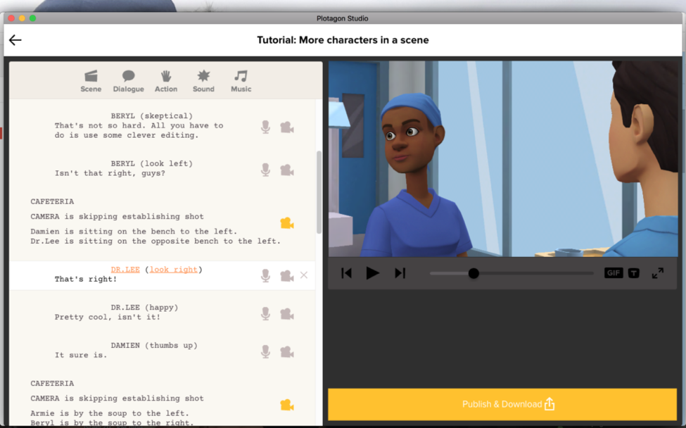 When you click the play button, the camera will automatically cut from two characters in one part of the scene to two characters in another part of the same scene.
